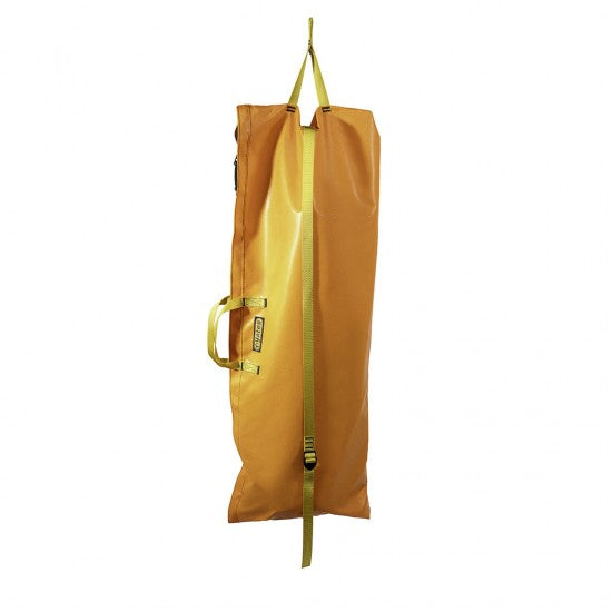 Extremely useful for any confined space operation where a vertical environment is encountered. In addition, the Spec Pak system is a lifting harness, thus eliminating the need for a separate victim harness. Unique self-adjusting (sliding) cervical restraint eliminates the problems associated with lifting patients vertically while secured to a rigid backboard. Storage bag provided equipped with a shoulder strap for carrying and top connection point for lowering without a patient in the device. Spec Pak is only intended as a limited spinal immobilization system. It must be used in conjunction with proper spinal immobilization such as the use of a cervical collar where conditions and protocols dictate. Designed by Spec Rescue International and Yates Professional. Weight 15 lbs.